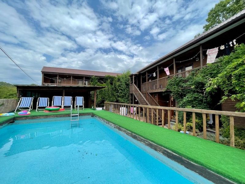 Самолетом до аэропорта Адлер, далее на электропоезде «Ласточка» до ст. Лоо, далее пересадка на автобус №76 до остановки «Вардане», далее 640 м до гостевого дома.
