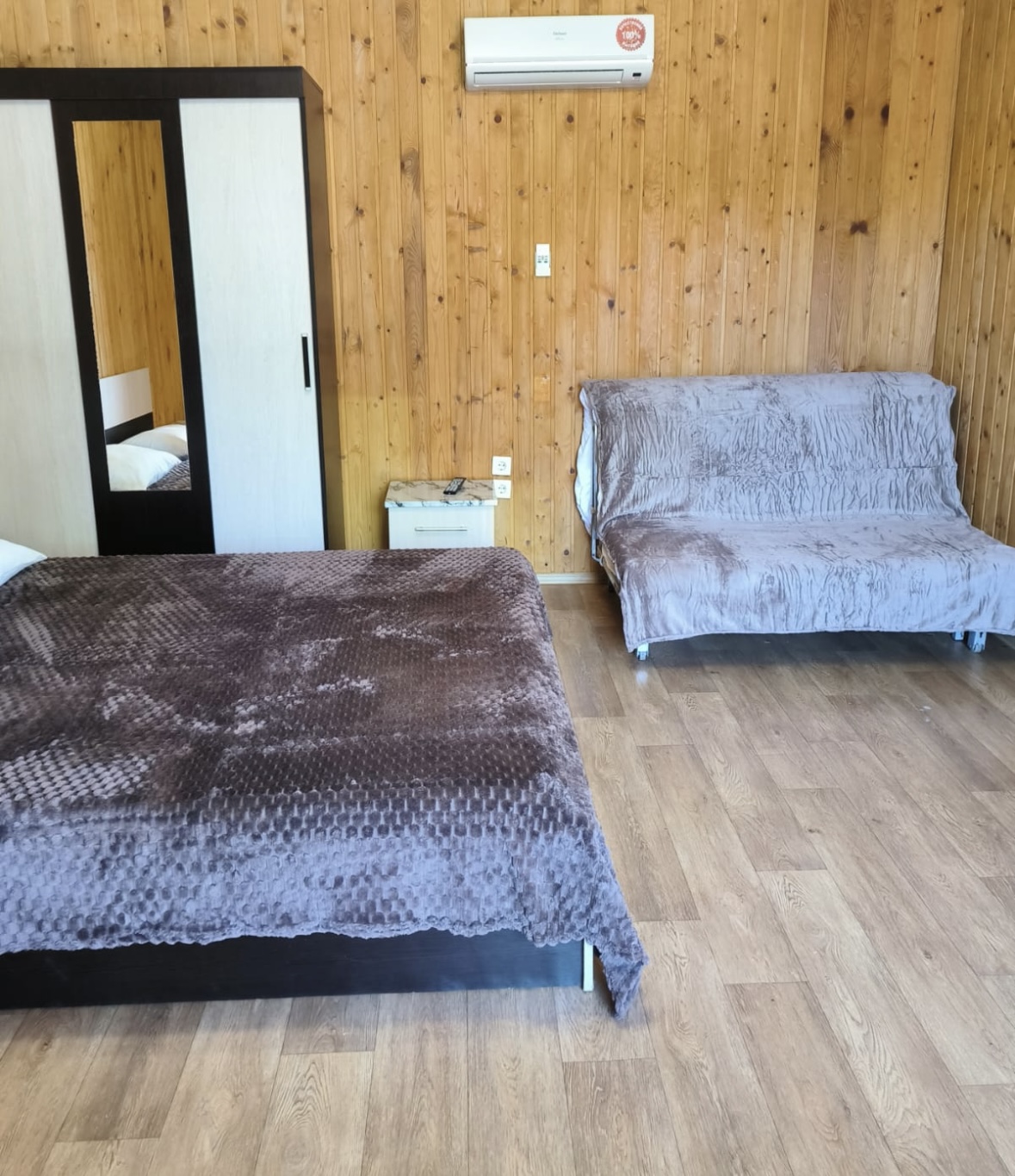 | Дом 7-местный | 90 кв.м. | 7 чел. | Кухня, Мебель (вешалка, диван раскладной, кровать двуспальная, кровать односпальная, прикроватная ту... | |